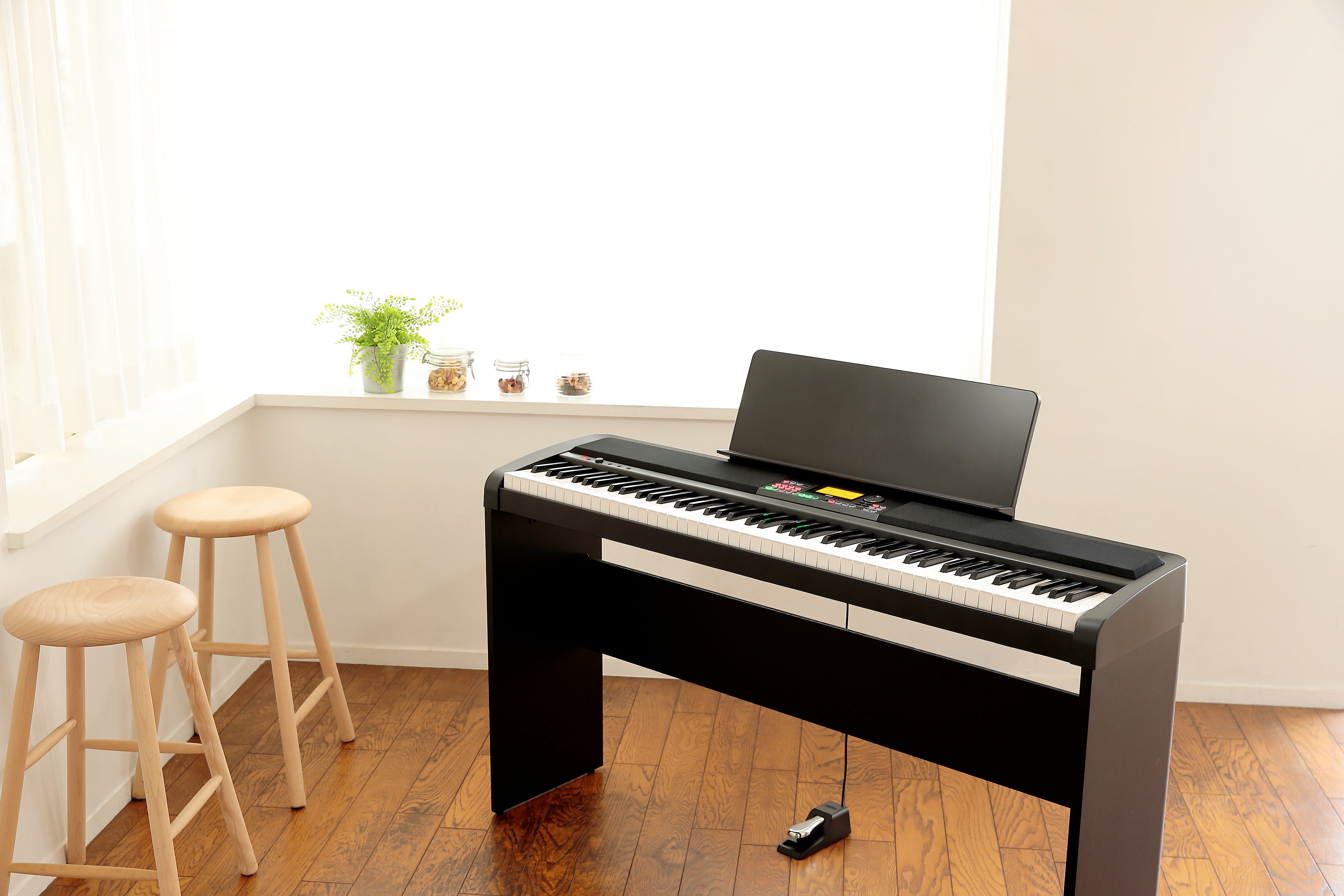 The XE20 is just 34 cm deep and weighs only 11.4 kg (*not including the music rest and the separately sold stand). Its versatile functions are centrally located on a convenient front panel, giving it the same compact style as a typical digital piano with additional accompaniment and customisation. The slim and lightweight body goes great in any room with its dedicated stand (*separately sold STB1), or easily carried and placed on a table, giving you more options for enjoying your XE20.