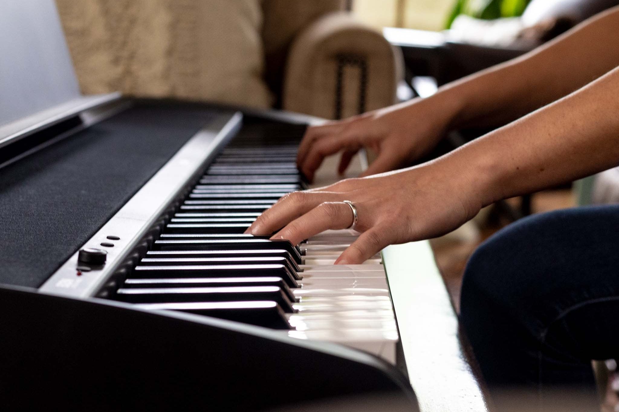 This instrument uses a Natural Weighted Hammer Action (NH) keyboard that reproduces the same feel that results from the hammers on a real acoustic piano, where the low register is heavier and the high register is lighter. The keybed is sensitive and responds to nuanced touch at the tip of your fingers.