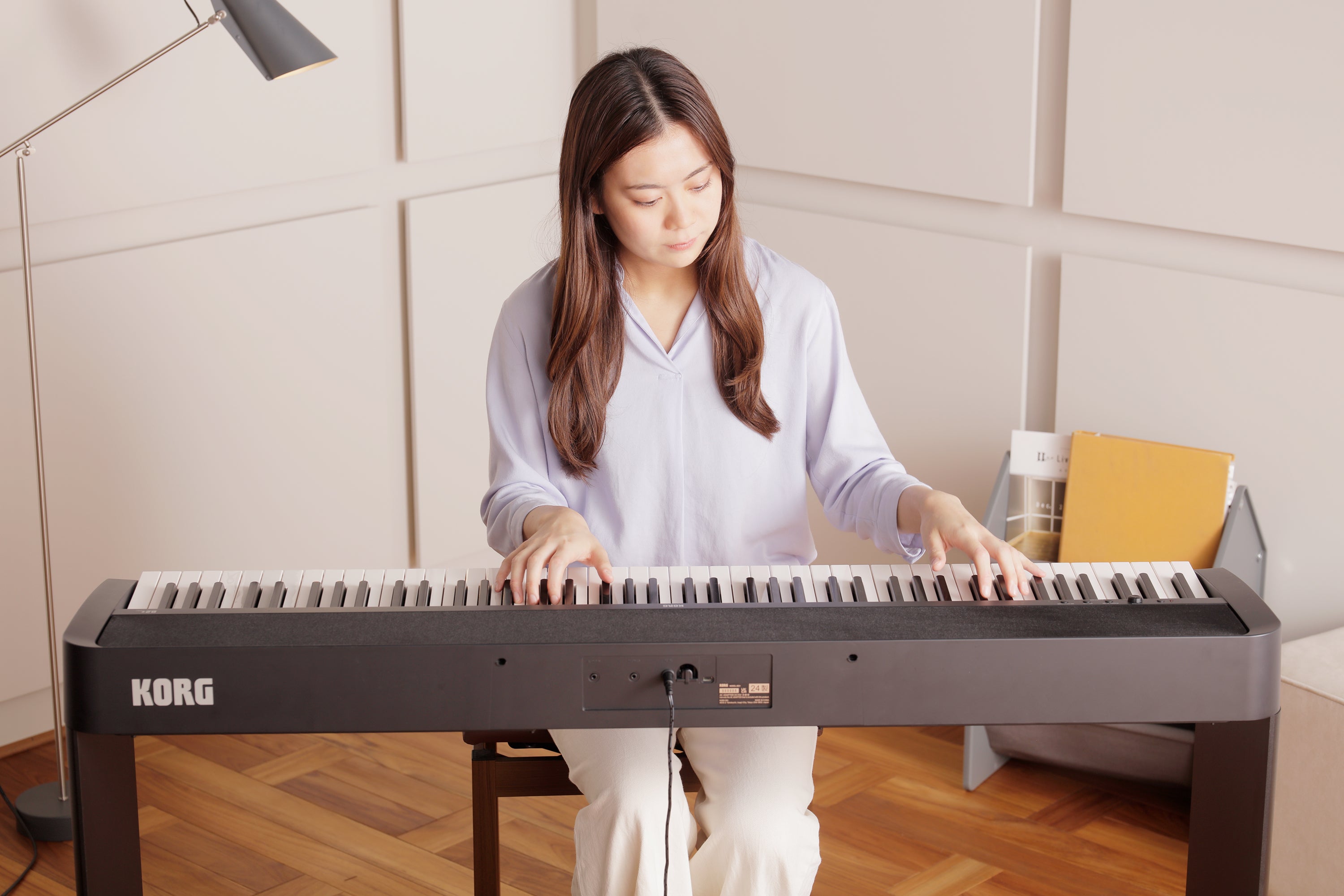 The B2+ features Korg’s Natural Weighted Hammer Action piano keyboard, offering a smooth and satisfying feel that responds to your dynamics and technique. Just like an acoustic piano, the lower notes feel slightly heavier and the upper notes lighter, helping you to build finger strength and control as you play. With three levels of touch sensitivity to choose from, the keyboard can be tailored to match your playing style - whether you’re looking for a lighter response or more resistance under your fingers.