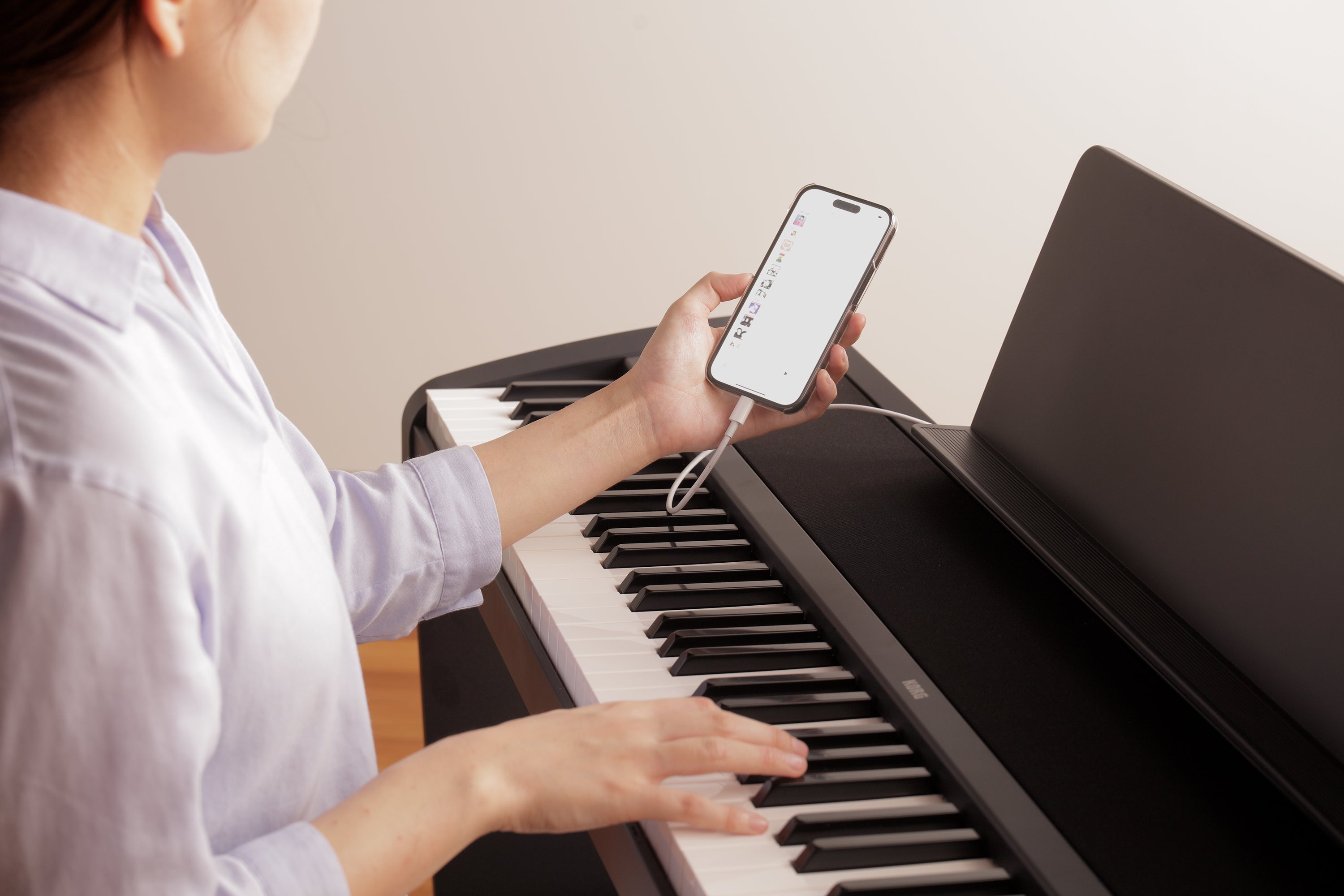 With USB Type-C for audio and MIDI, the B2+ connects easily to your smartphone, tablet or computer. You can play software instruments, follow along with online lessons, record your playing into a DAW, or stream backing tracks directly through the internal speakers. The B2+ becomes part of your setup without needing complicated adapters or additional hardware. An audio input is also included, so you can plug in a music player or phone and play along with your favourite songs - perfect for learning new material or simply enjoying a more immersive practice session.