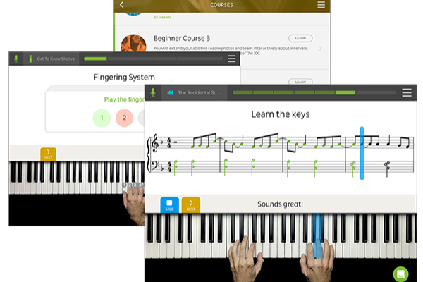 Skoove is the fastest and most broad-based platform for learning piano performance. Through the three steps "hear, learn, perform" you'll acquire performance skills and musical ear training. More than ten courses and more than 300 songs are provided, and others are constantly being added. Skoove provides lessons that are appropriate for the needs and skill levels of those who are just starting piano as well as those who can already play.