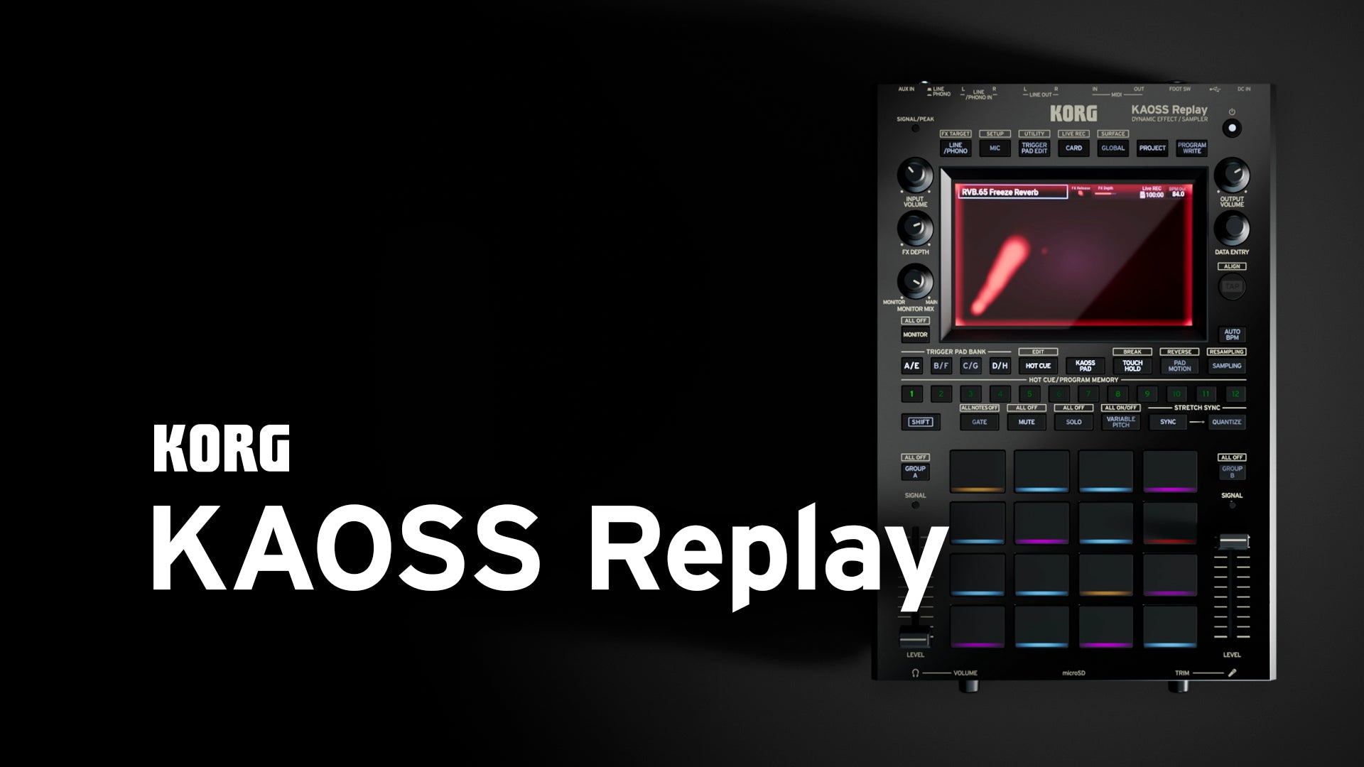 KAOSS Replay is a self-contained performance tool - an all-in-one solution for musicians, performers, and producers. It features unparalleled KAOSS Pad effects, immersive sample playback and sampling capabilities, and intuitive DJ controls. Powered by USB-C and equipped with broad connectivity, KAOSS Replay offers an effortless and swift setup for stress-free performances without the hassle of intricate rigs.