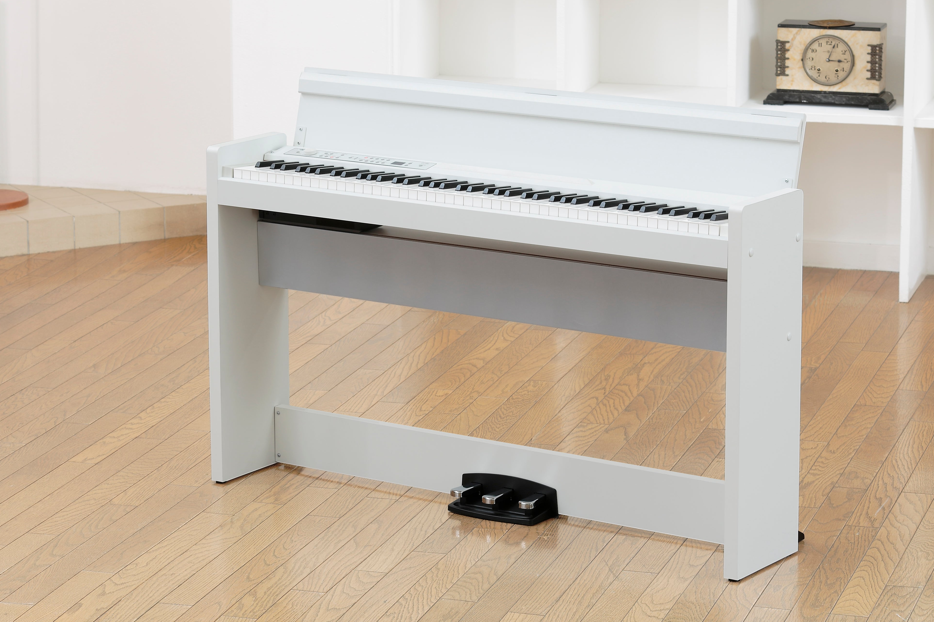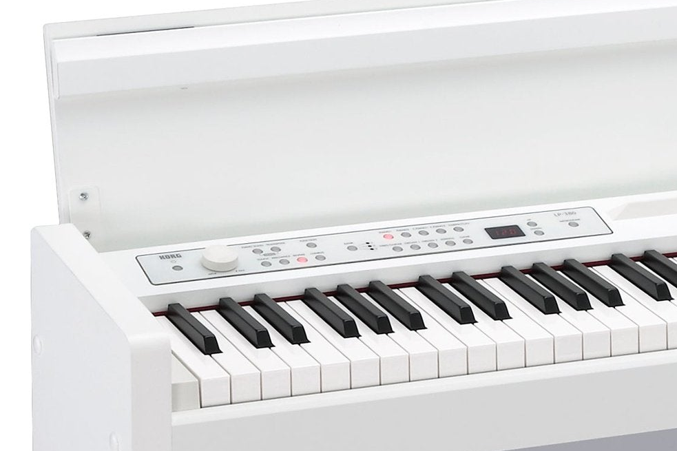 The LP-380 provides a brilliant piano sound in a low-profile, slim design. The flat-top cabinet looks stylish even when the key cover is closed. The high-output amplifier and speakers accurately reproduce a realistic piano sound, while Korg’s flagship RH3 keybed enables expressive performances.