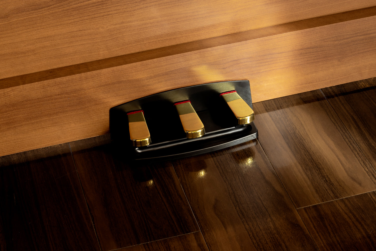Accentuated with gold-trimmed pedals and toes, the design exudes luxury, further enhancing the overall aesthetic appeal. The slender depth of merely 26 cm (excluding the anti-tipping bracket) lends the Poetry a streamlined silhouette, further complemented by the practicality of a flat surface when the lid is closed, melding elegance with functionality.