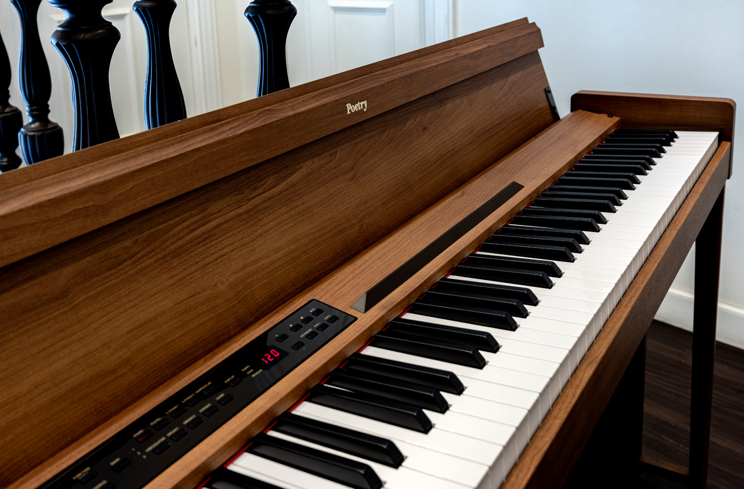 The Poetry also features an adjustable key touch control. This feature allows players to tailor the production of notes across five levels – light, standard, heavy, steady, and constant. This customizability caters to varying touch strengths, providing a personalized and more enjoyable playing experience for pianists of all skill levels.
