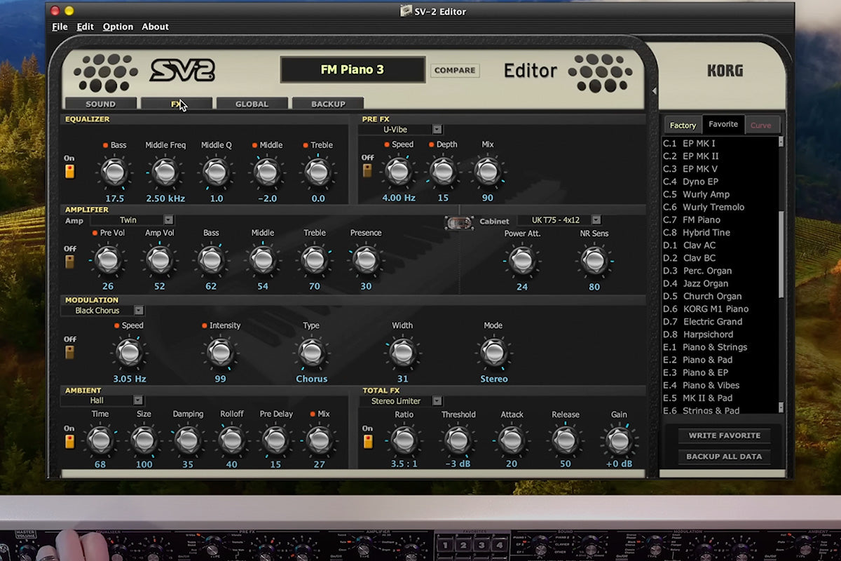 You can create and manage splits and layers, assign effect parameters, browse extended sound libraries, and load additional content released by Korg. It’s also a convenient tool for organising your Favourites and backing up your setups.